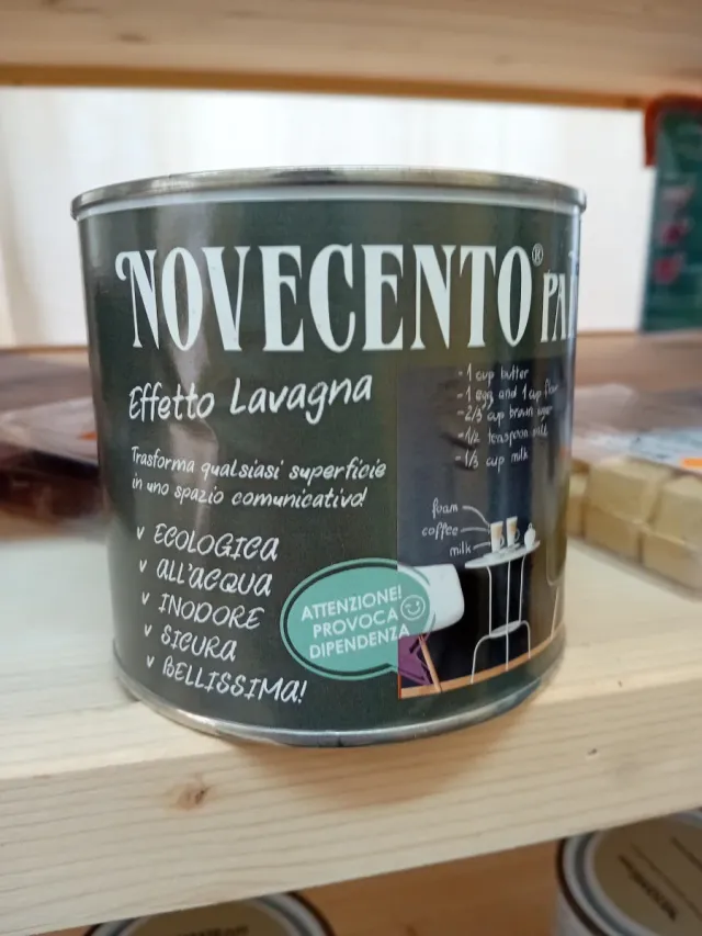 Dettagli del prodottoVernice Novecento effetto lavagna, trasforma qualsiasi superficie in uno spazio comunicativo. È ecologica, a base d'acqua, inodore, sicura e bellissima.