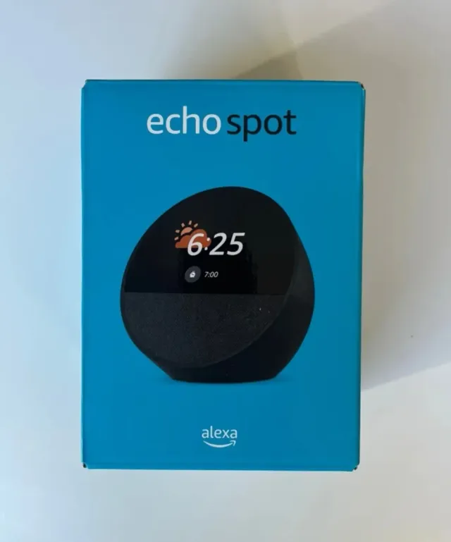 Dettagli del prodottoDispositivo Echo Spot ultima generazione con schermo touch e Alexa, colore nero. Scatola sigillata di fabbrica, dispositivo nuovo. La descrizione è stata tradotta automaticamente.