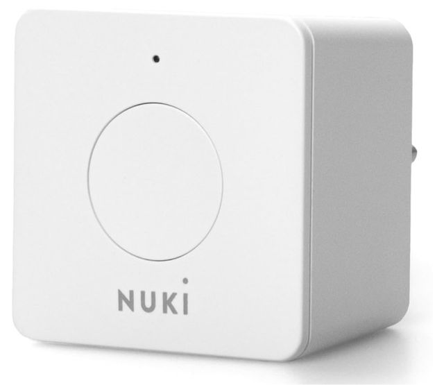 Dettagli del prodottoEstensore per serratura intelligente Nuki. - Connettività Bluetooth e WiFi. - Compatibile con Amazon Alexa, Apple HomeKit e Google Home. - Colore bianco. La descrizione è stata tradotta automaticamente.