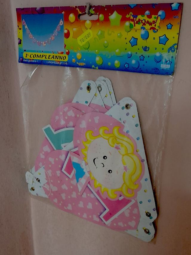 festone striscione buon 1° compleanno cm 240 , per battesimo, compleanni, facile montaggio. Prodotto dalla ditta Givi Itali srl