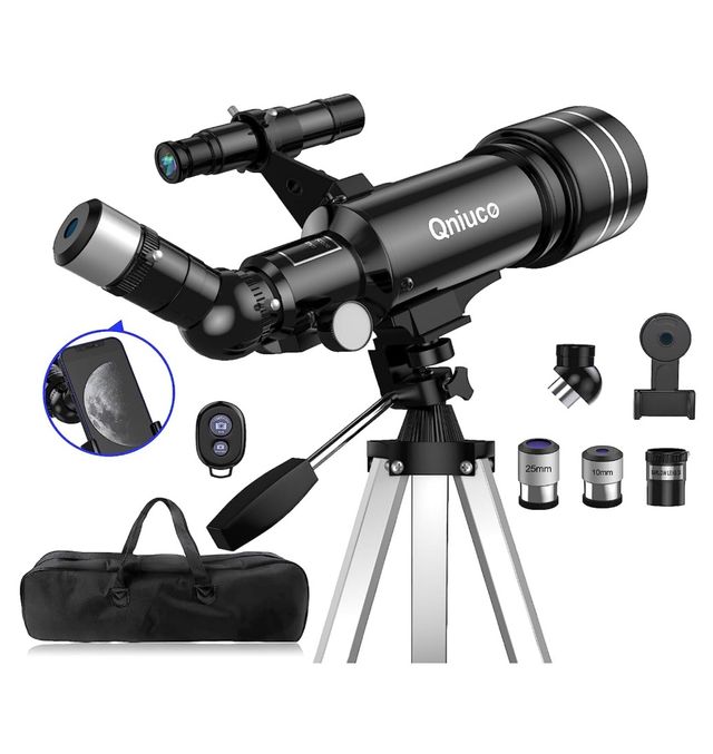Telescopio professionale con adattatore per smartphone, telecomando senza fili,treppiede regolabile, zaino e altri accessori utili.