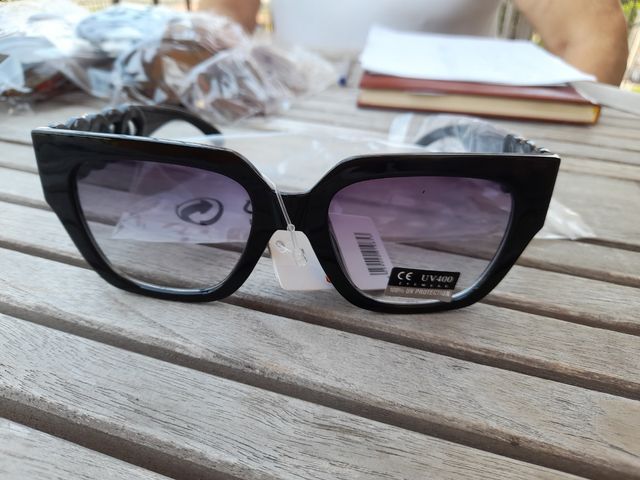 occhiali da sole neri stanghette intreccio