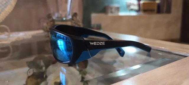 Dettagli del prodottoOcchiali da sole con lenti a specchio blu.