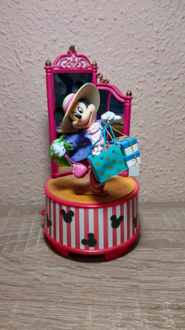 Dettagli del prodottoIncantevole carillon Enesco con Minnie Mouse. Raffigura Minnie con cappello, cappotto e sciarpa, carica di borse della spesa. Carillon della prestigiosa marca ENESCO. Minnie si muove al ritmo della musica. Suona la melodia My Favorite Things.
