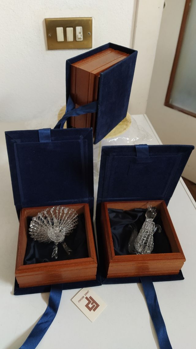 Dettagli del prodottoPer amanti degli oggetti in vetro dispongo di personaggi quali: sedia a dondolo, annaffiatoio, pavone, tacchino, airone, , violino, koala, lampada, abaut jour, tavolino, canguro, trespolo con uccellino confezione in velluto e legno a parte. 3 euro al pezzo.
