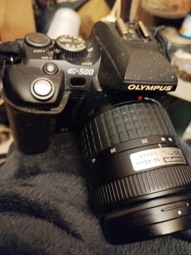 Dettagli del prodottoFotocamera digitale Olympus E-500 con obiettivo. - Modello: E-500 - Obiettivo: 14-45mm 1:3.5-5.6 - Senza batteria. La descrizione è stata tradotta automaticamente.