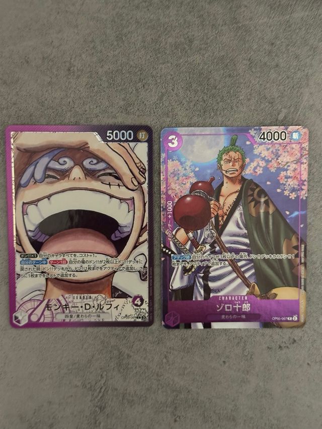 Coppia di carte del gioco di carte collezionabili One Piece. - Carta Monkey D. Luffy. - Carta Zoro Juro .