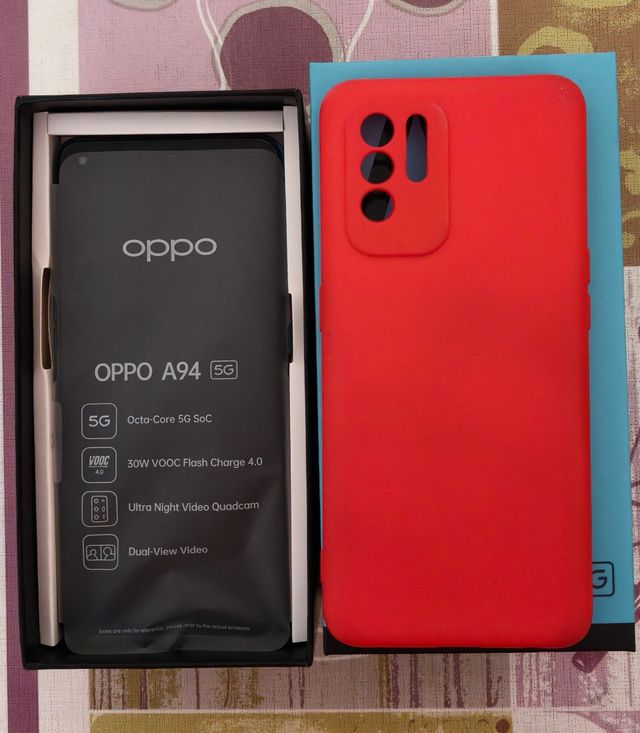 Vendo un OPPO A94 5G di colore rosso. Il telefono è in ottime condizioni. Include una custodia protettiva rossa.