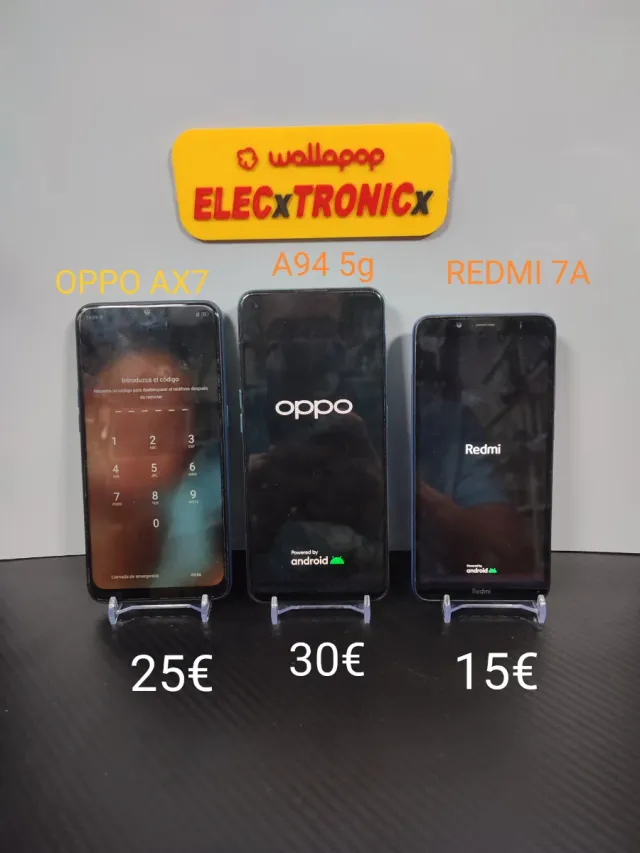 In condizioni accettabili · Oppo e Xiaomi · A94 5G e AX7 e Redmi 7A · Meno di 4 GB · Nero
