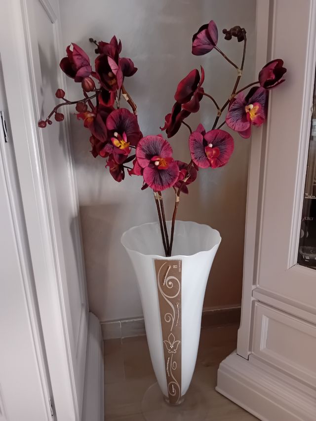 Dettagli del prodottoBellissime orchidee artificiali di colore rosso scuro, perfette per decorare la tua casa. Sono in ottime condizioni e sembrano molto realistiche.