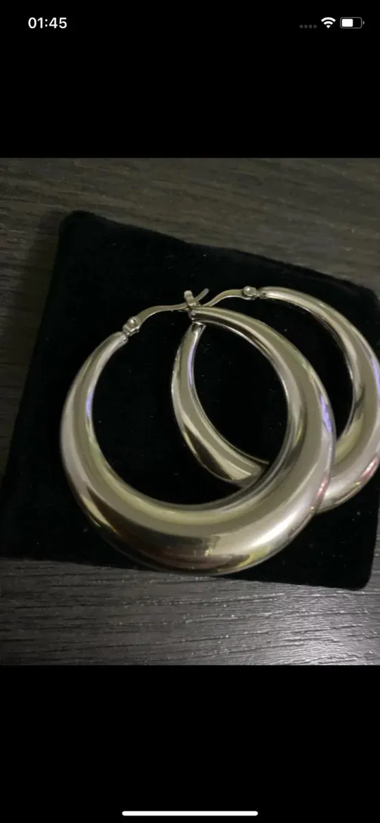 Eleganti orecchini a cerchio in acciaio. - Design moderno e lucido. - Chiusura a scatto.