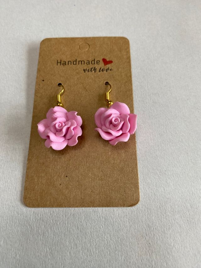 Orecchini realizzati a mano in fiori rosa di resina monachella in acciaio dorato nichel free
