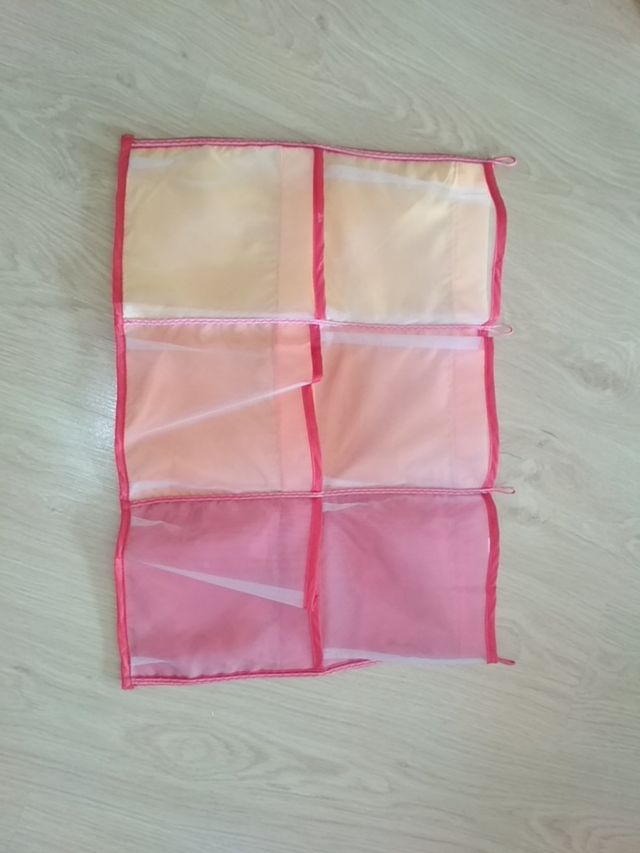Organizer con sei tasche semitrasparenti e quattro punti di presa.