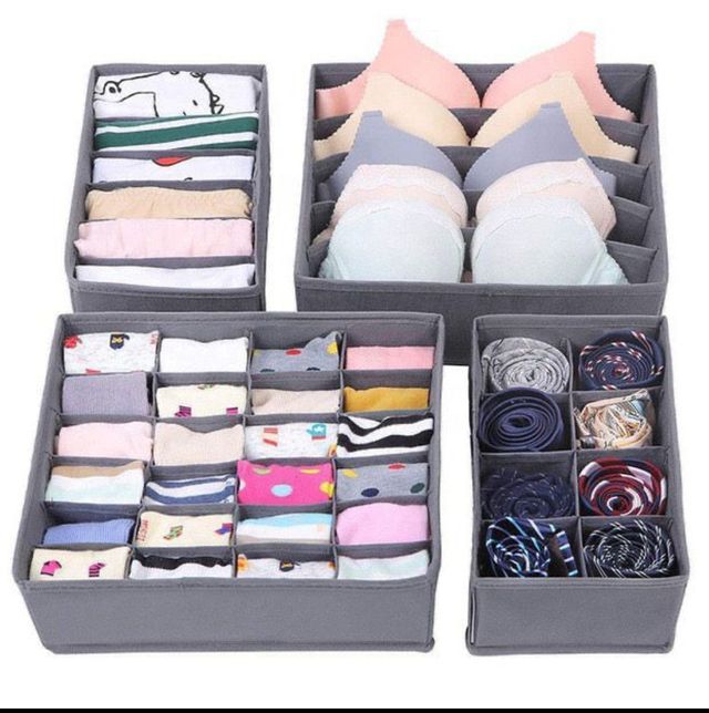Set di 4 pezzi di organizzatore di biancheria . Ideale per calzini,slip, reggiseno,sciarpe , cravatte ecc...... Colore disponibile Grigio
