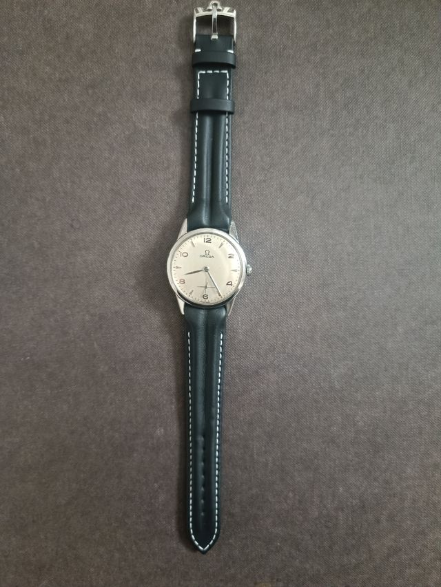 Elegante orologio da polso anni '60, con diametro da 35 mm, corono esclusa. Il segnatempo è in ottime condizioni, con cinturino in pelle nuovo e originale, come la fibia. Scatola Omega non in perfette condizioni. Cassa in acciaio, movimento meccanico a carica manuale