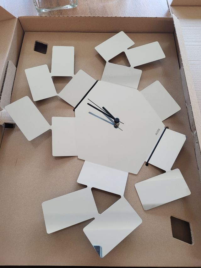 Dettagli del prodottoOrologio da parete Alessi "La Stanza Dello Scirocco", acciaio inox lucido, misura 46x33, nuvo ancora imballato Misure del prodotto