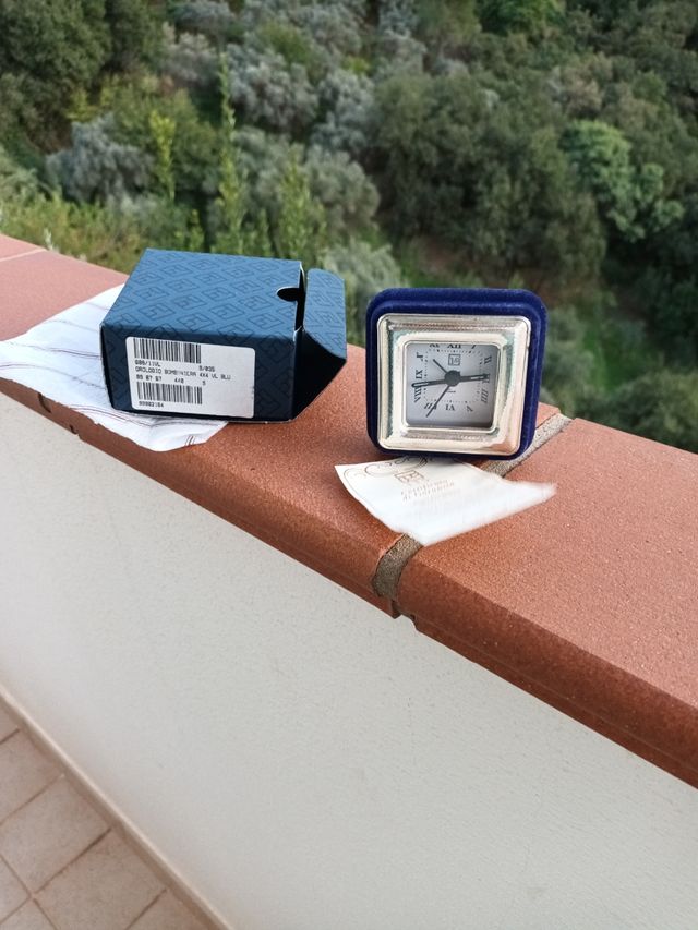 nuovo argento e velluto blu misure 6,5x6,5x3