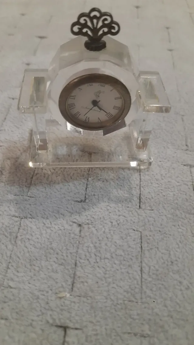 Dettagli del prodottoMini orologio da collezione con struttura in cristallo trasparente.