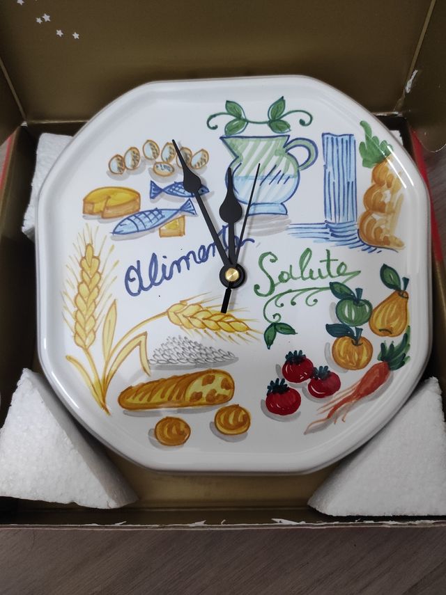 Vendo orologio da parete, decorato a mano, le misure sono 20 x 20 cm circa. Mai usato.