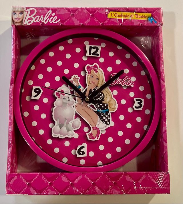 Dettagli del prodottoOrologio da parete a tema Barbie, perfetto per una cameretta.