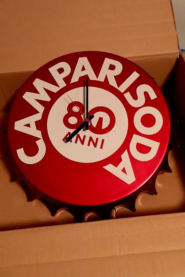 Dettagli del prodottoOrologio a parete da collezione Campari Soda, celebrativo degli 80 Anni.