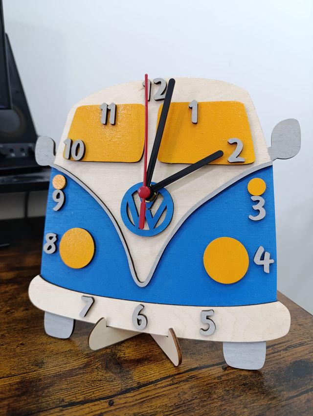 Dettagli del prodottoOrologio decorativo in legno a forma di furgoncino vintage.