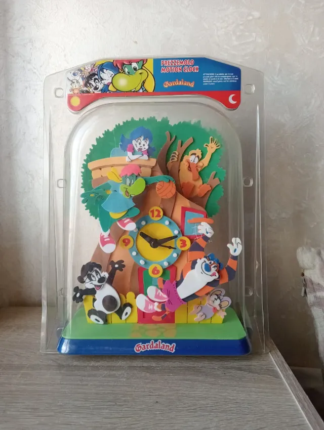 Dettagli del prodottoOrologio da tavolo o da parete in plastica. Gadget parco dei divertimenti di Gardaland, circa fine anni 90 inizio 00. Nuovo nella sua scatola originale. La scatola presenta lievi ammaccature che possono essere risistemate dall'interno una volta aperta. Altezza: 27cm circa