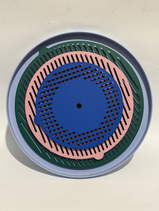 Realizzato in collaborazione con designer contemporanei IKEA, unisce forme geometriche e colori vivaci (blu, rosa e verde) per un look unico e moderno.