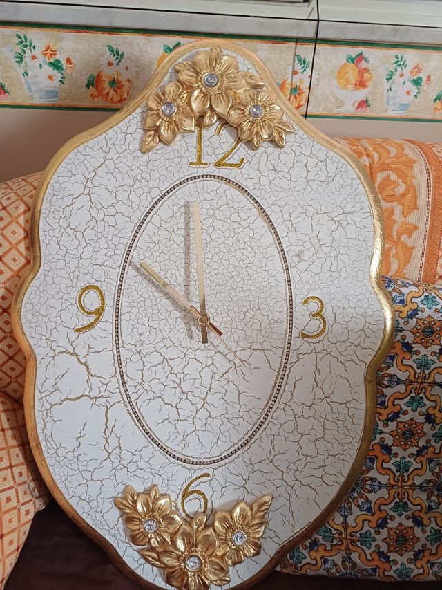 bellissimo Orologio da parete oro e panna funzionante in legno marmorizzato. misure 63x43cm.