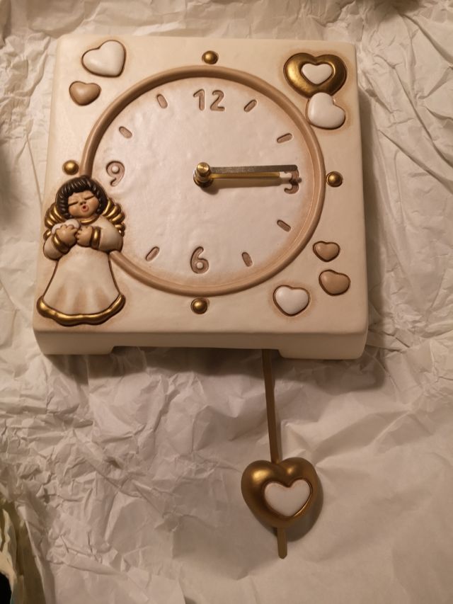 Orologio da parete thun, angioletto e cuoricini. Beje e dorato Nuovo con scatola originale, mai usato
