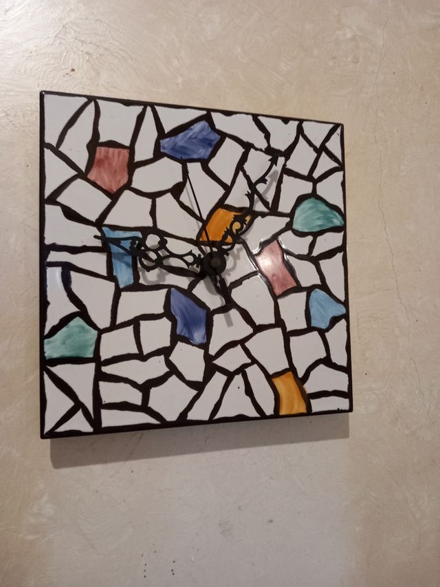 Dettagli del prodottoorologio artigianale decorato a mano su mattonella, artigianato campano. Misure del prodotto