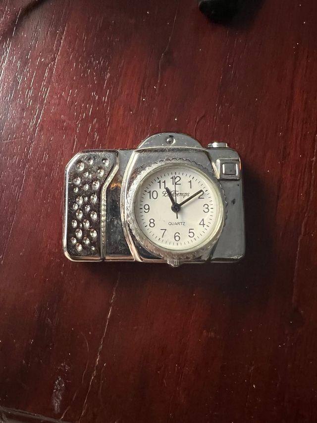 Dettagli del prodottoOrologio da scrivania a forma di macchina fotografica, risalente agli anni '90. Un pezzo unico per la tua collezione.