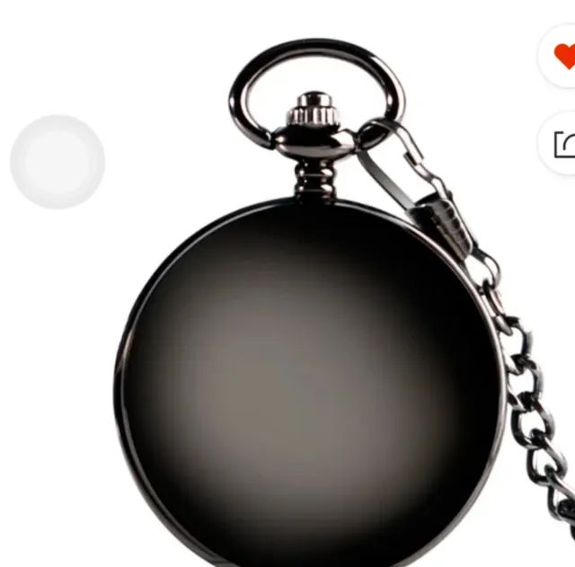 Elegante orologio da tasca con catenella. - Cassa rotonda in metallo. - Finitura scura. - Catena con moschettone.