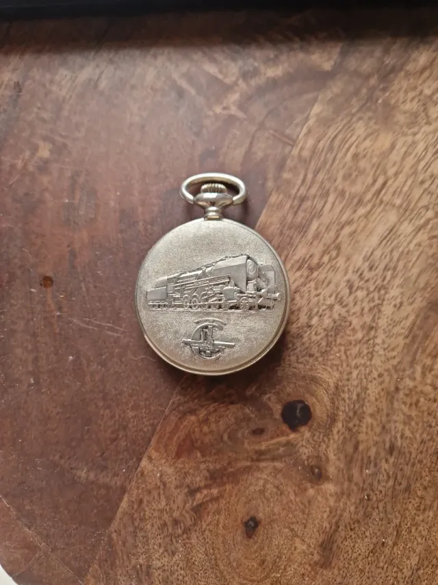 Orologio da tasca vintage Perseo con decoro di un treno in rilievo - Modello Perseo. - Tema ferroviario.