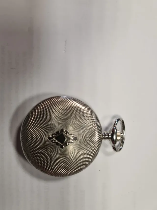 Elegante orologio da taschino con cassa finemente lavorata. - Cassa in metallo con motivo a spirale. - Dettaglio a forma di rombo al centro. - Anello per catena.