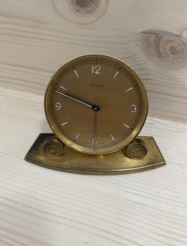 Elegante orologio da tavolo con cassa in metallo color oro. - Marchio: Cyma - Movimento: Swiss Made - Design classico