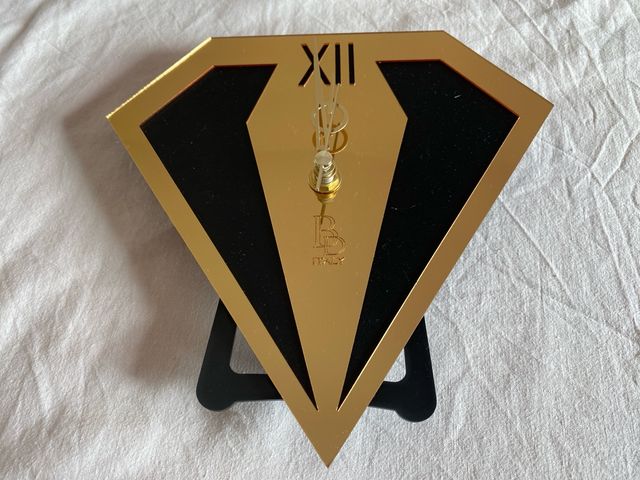 Dettagli del prodottoElegante orologio con un design a forma di diamante, adatto sia per essere appeso al muro che posizionato su un tavolo grazie al suo supporto.