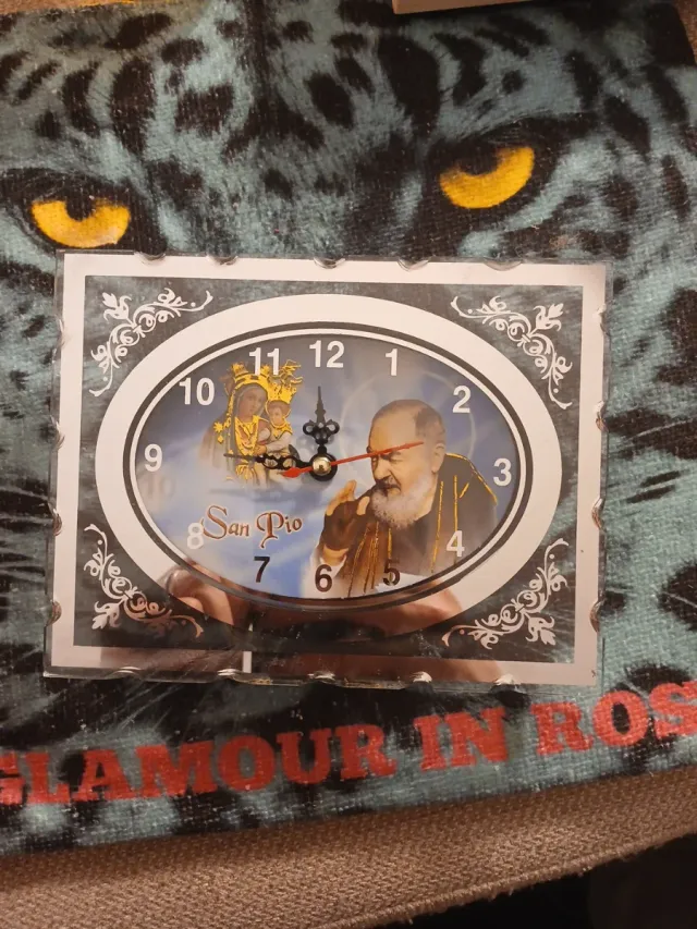 Dettagli del prodottoOrologio da tavolo con immagine di San Pio.