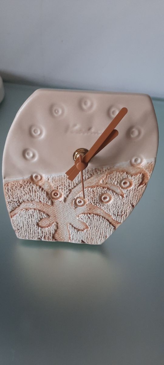 Orologio da tavolo Verzolini nei toni del beige e marrone, lancette marrone.Nuovo, mai usato, corredato di scatola.