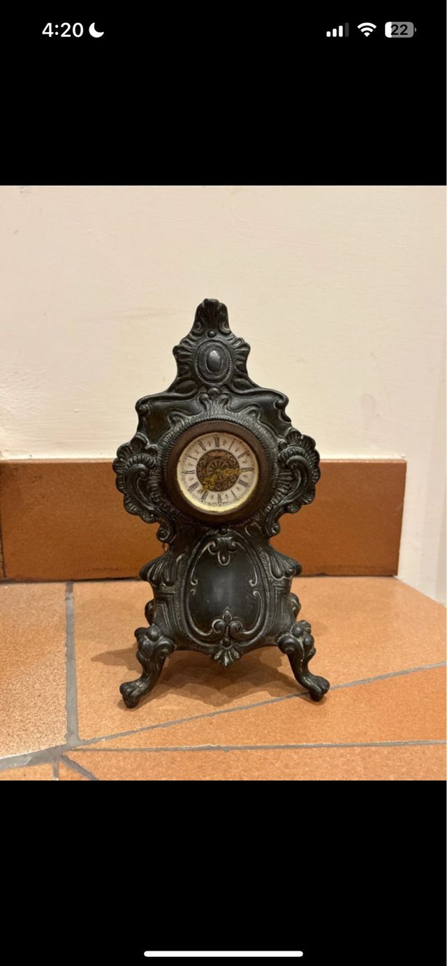 Dettagli del prodottoElegante orologio da tavolo in stile Liberty, risalente agli anni '50. Un pezzo d'arredo che aggiunge un tocco di classe.