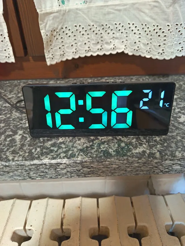 Dettagli del prodottoOrologio digitale da tavolo con display a LED.
