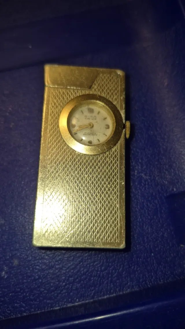 Dettagli del prodottoUn elegante set composto da un orologio e un accendino, risalenti agli anni '60. Un pezzo unico per collezionisti.