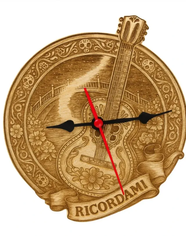 Dettagli del prodottoOrologio da parete in legno con un design ispirato al film Coco.