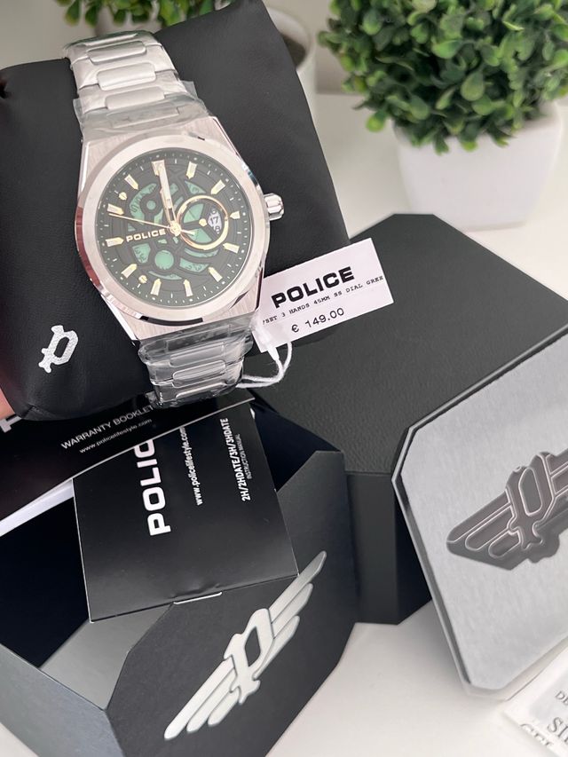 Dettagli del prodottoElegante orologio Police con cassa da 45mm e quadrante verde.