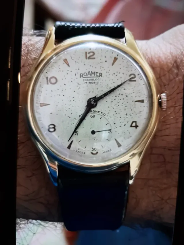 Dettagli del prodottoOrologio da polso vintage Roamer con movimento meccanico. Completamente revisionato e funzionante. Per amanti del vitage. Vera Occasione. Prezzo leggermente trattabile.