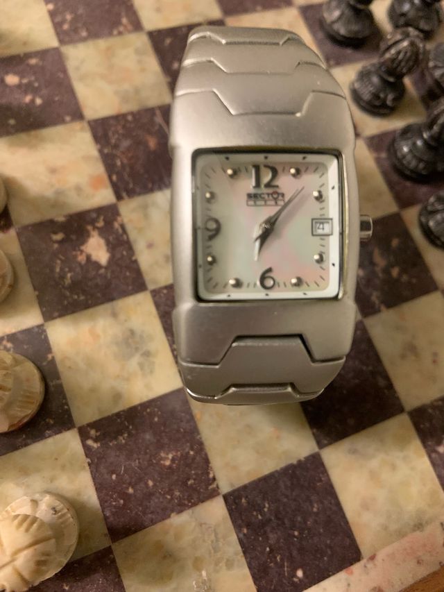 Orologio da polso Sector, ideale per donna o ragazza con polso piccolo. La cassa è di colore argento e il quadrante è bianco.