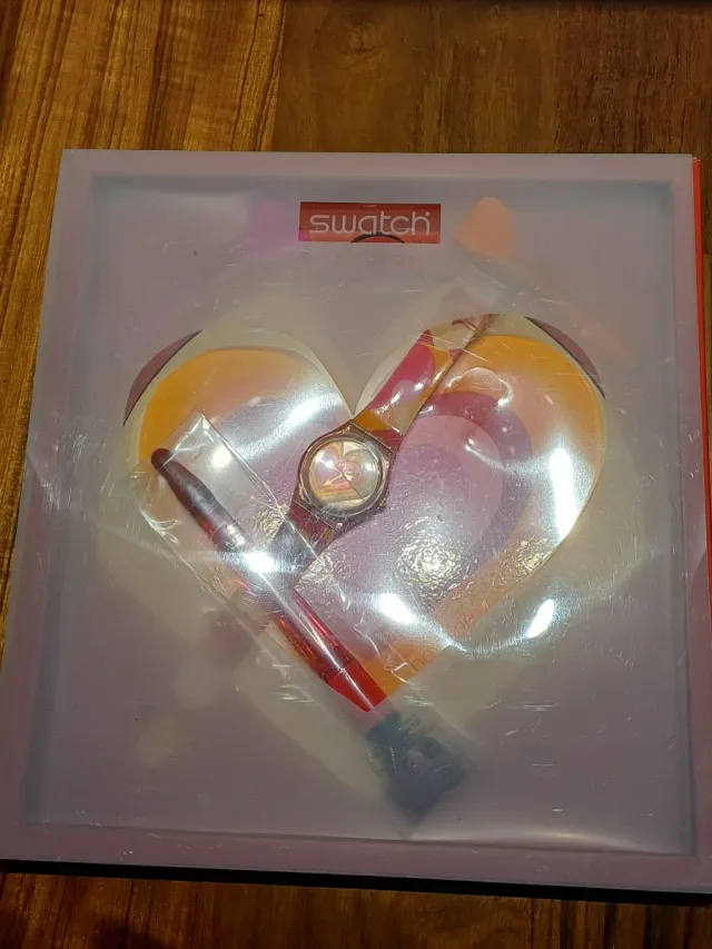 Dettagli del prodottoOrologio Swatch con un design a forma di cuore, ideale per un regalo speciale.