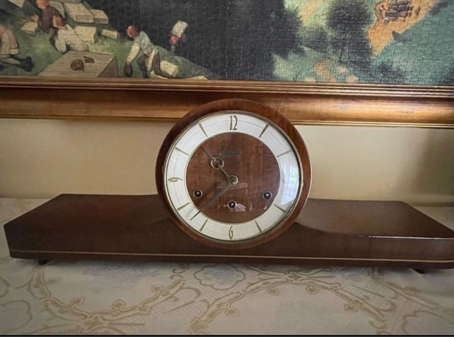 Dettagli del prodottoElegante orologio da camino vintage firmato Stanley Westminster, in pregiato legno lucido con quadrante classico e inserti dorati. Ideale per arredare con stile ambienti retrò o moderni con un tocco di charme d’altri tempi. Meccanismo a carica manuale