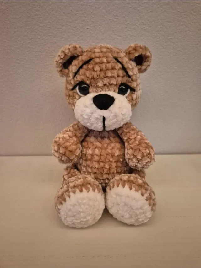 Dettagli del prodottoOrsetto fatto a mano all'uncinetto in morbida ciniglia color marrone.