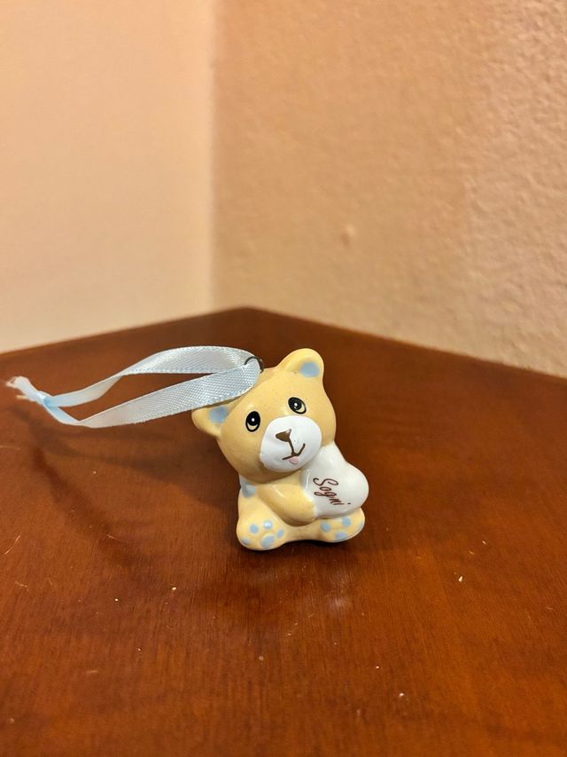 Orsetto in ceramica con fiocco azzurro